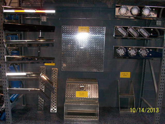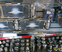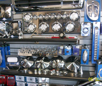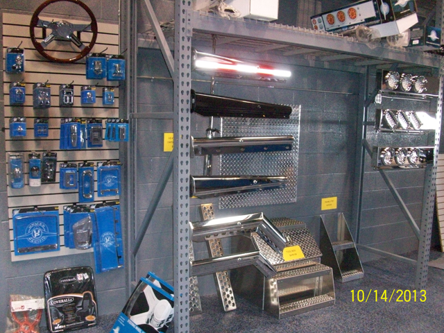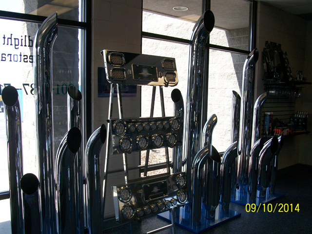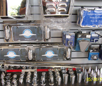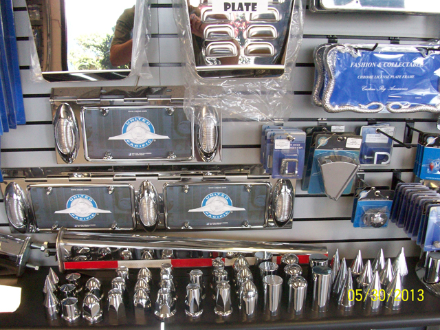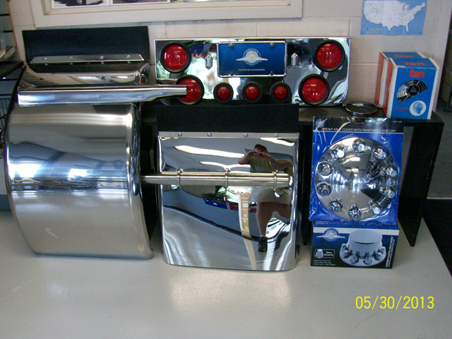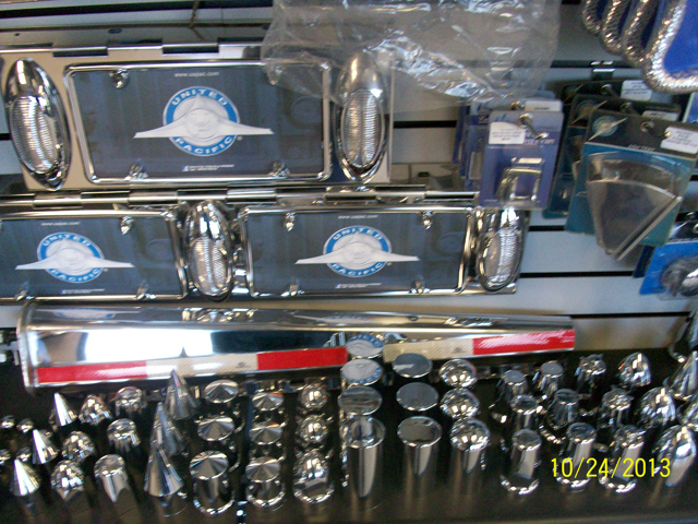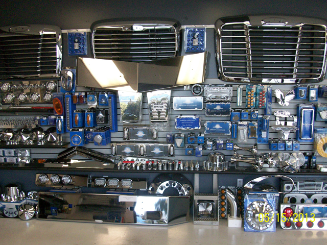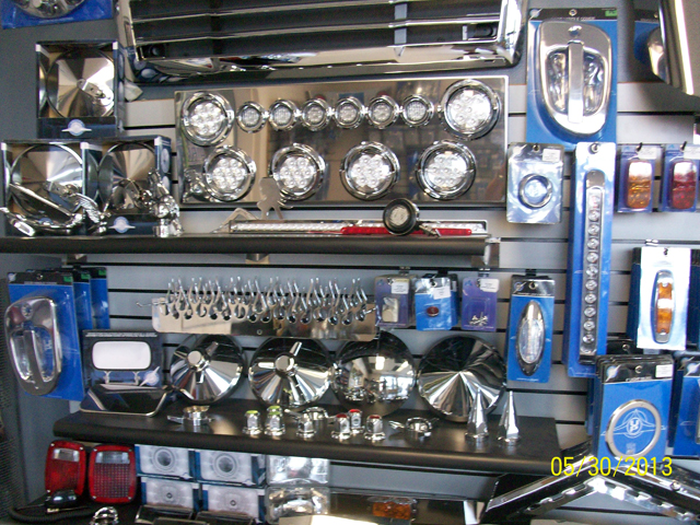 BUMPERS, STACKS, VISORS, GRILLS, LIGHT, BARS, HOOD, ORNAMENTS, SHIFT KNOBS, TRUCK SLEEPER MATTRESSES, CHOP TRIM, REAR PANELS, STAINLESS STEEL HOOD VENTS, MUD FLAP HANGERS, LICENSE PLATE HOLDERS, BUG SHIELDS, NUT BUDDIES, HUB CAPS, AXLE COVERS, MIRRORS, DECK PLATES, QUARTER FENDERS, STAINLESS REAR FRAME COVERS, AFTER MARKET HEADLIGHTS, WORK LIGHTS, SPOT LIGHTS, LED MARKER AND SIGNAL LIGHTS, TOOL BOXES, FRAME STEPS, STEERING WHEELS, AIR HOSE POGO STICKS, FANS, TRAIN HORNS, FENDER GAURDS, AIR CANS, BREATHER LIGHT BARS, CHROME DASH ACCESSORIES OF ALL KINDS, FLEXIBLE INTERIOR LED LIGHTING STRIPS AND MORE – LOTS MORE